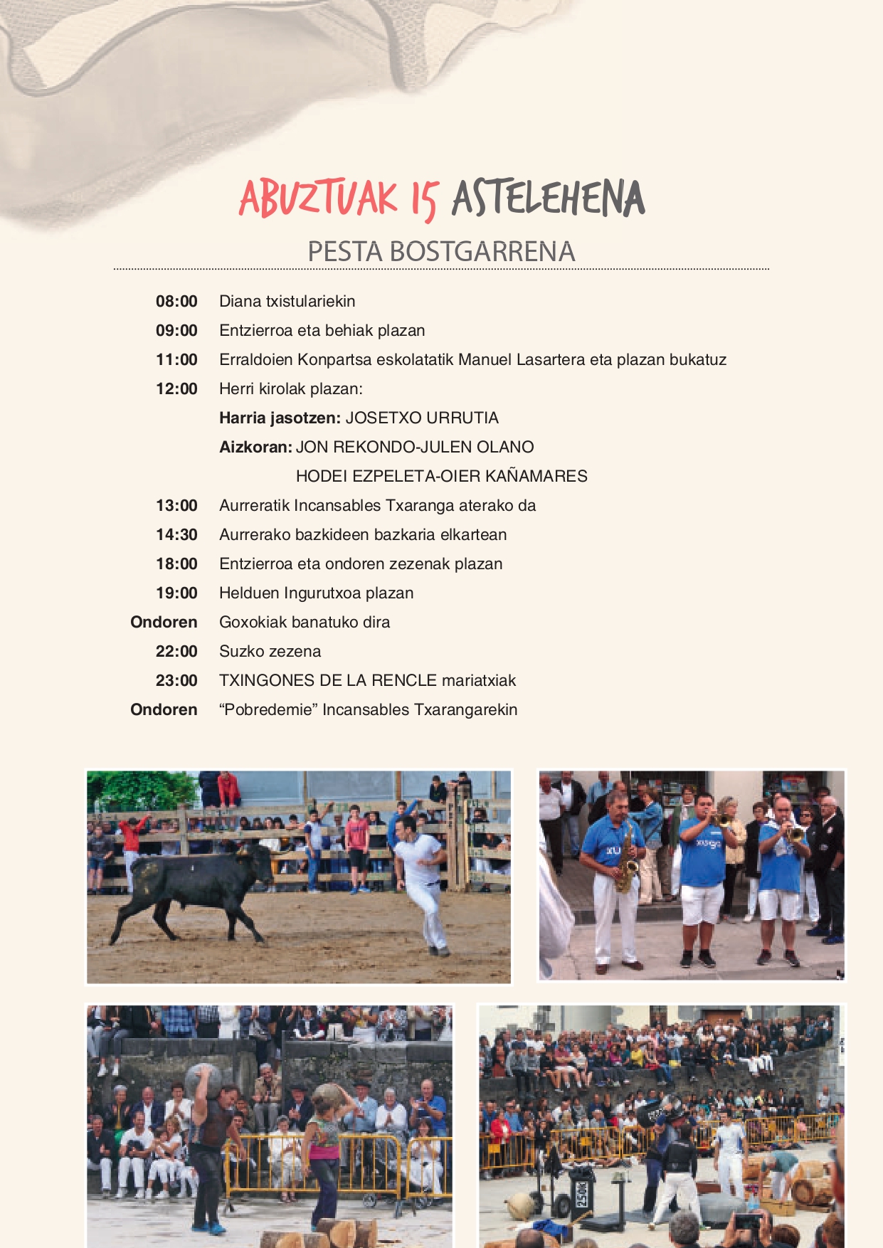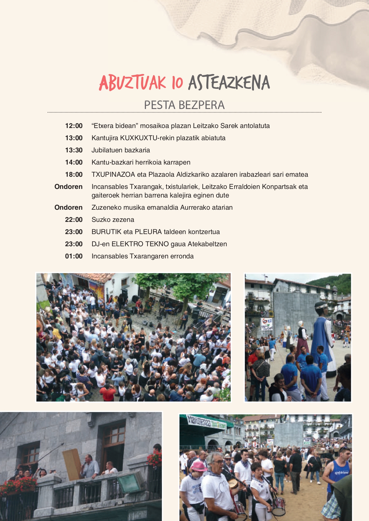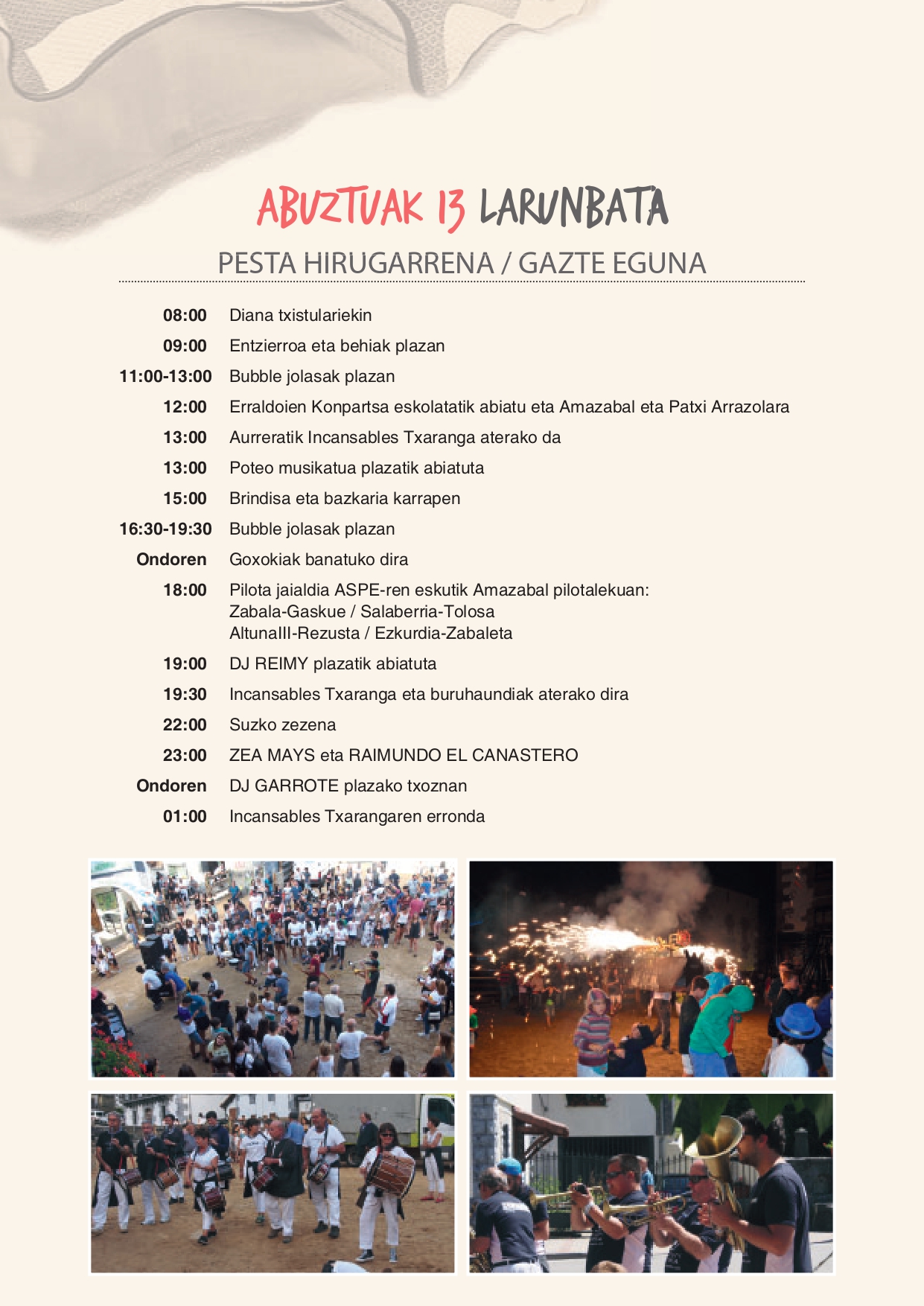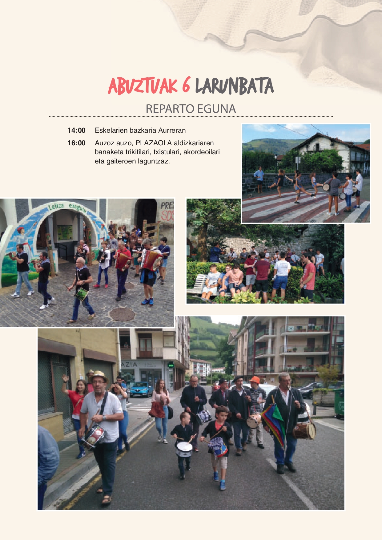 Abuztuaren 10etik 15era pesta nagusituko da gure herrian. Herritar zein bisitarientzat ez da egonen aspertzeko tarterik; horregatik, hemen duzue ikusgai aurtengo Plazaola Aldizkaria, EGITARAU osoarekin.
