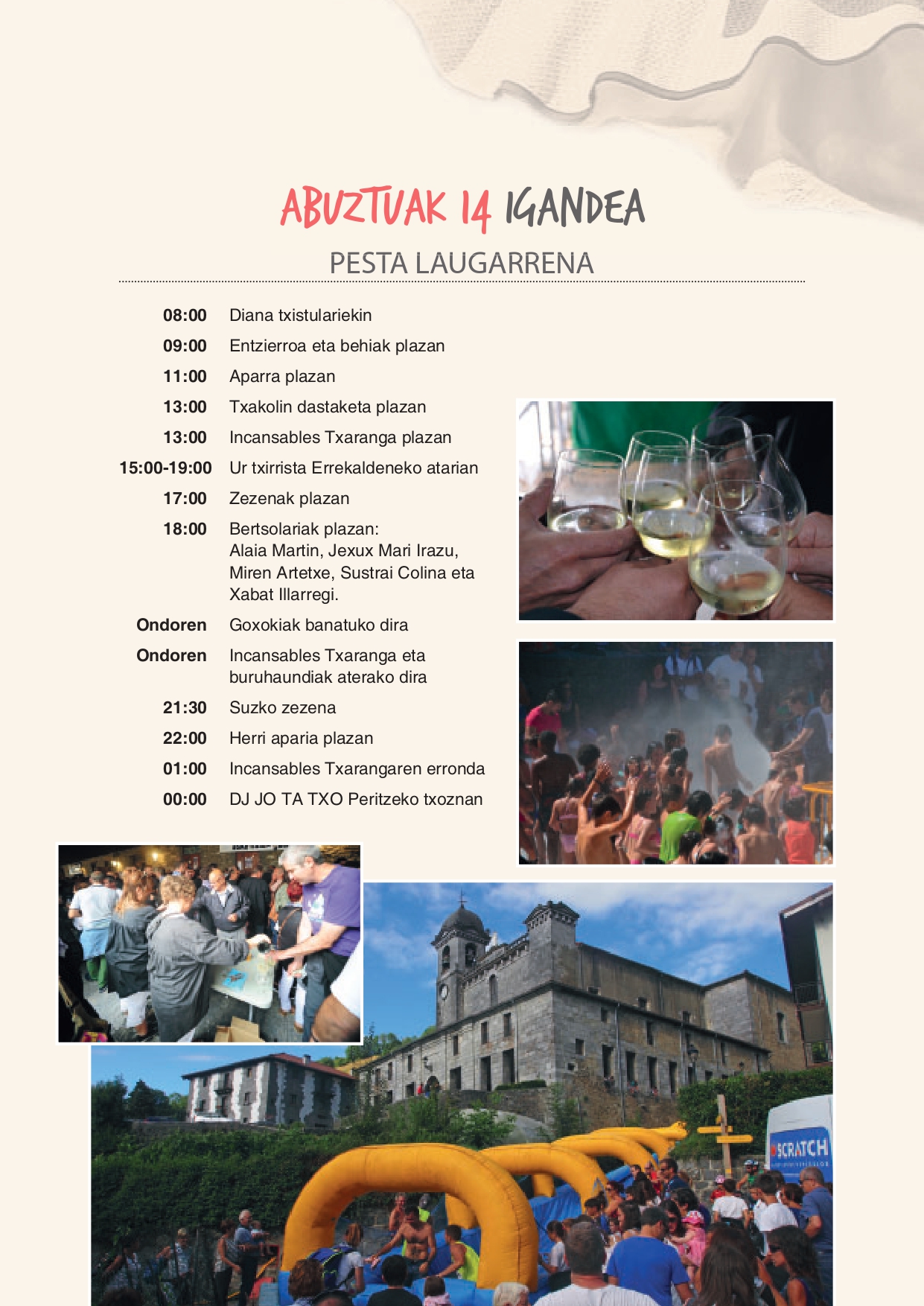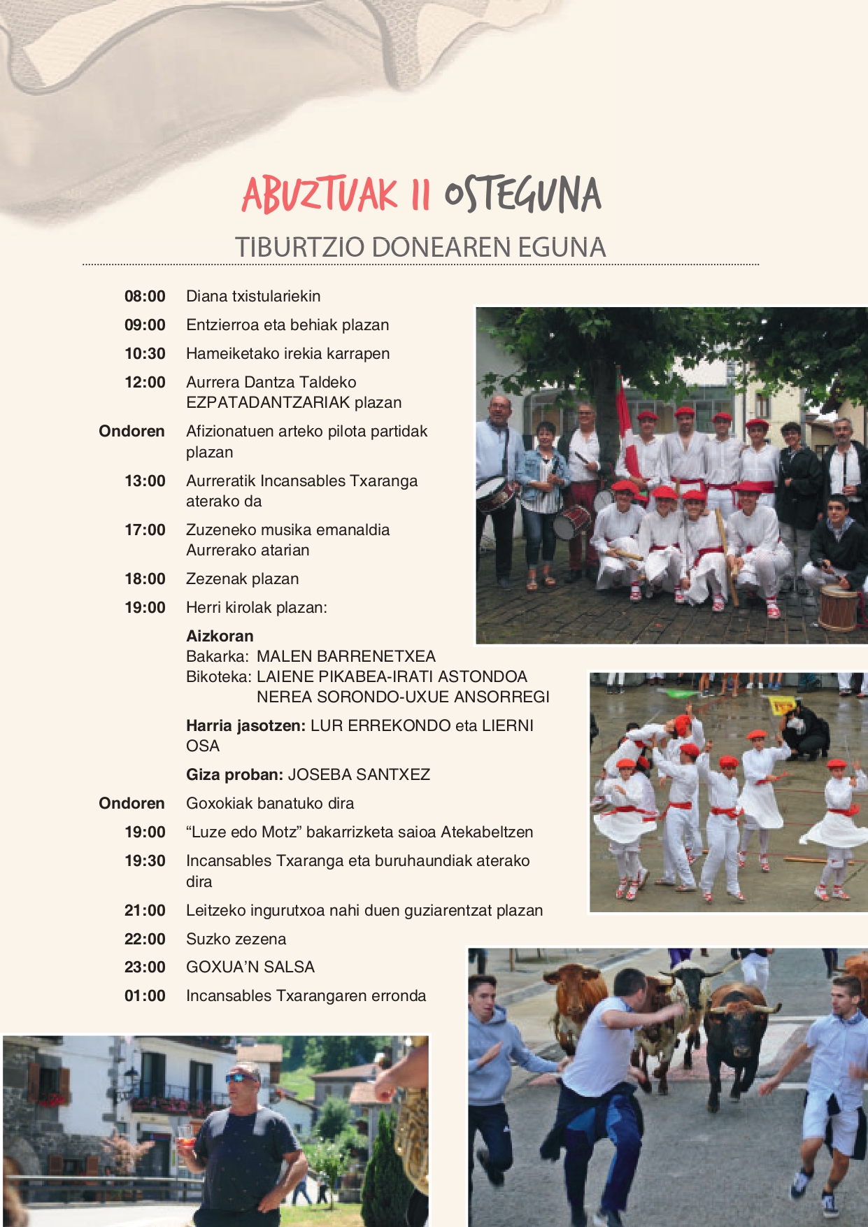 Parte‐hartzea eta auzolana ikur hartuta, aurten ere programaren prestaketan batzordetik kanpoko herritarren ekarpenak jaso dira. Gure herriko Pestak herrikoiak eta aberatsak izateko bermea izanen dugu etorkizunean ere. Zoriontzekoa beraz hauen lana!