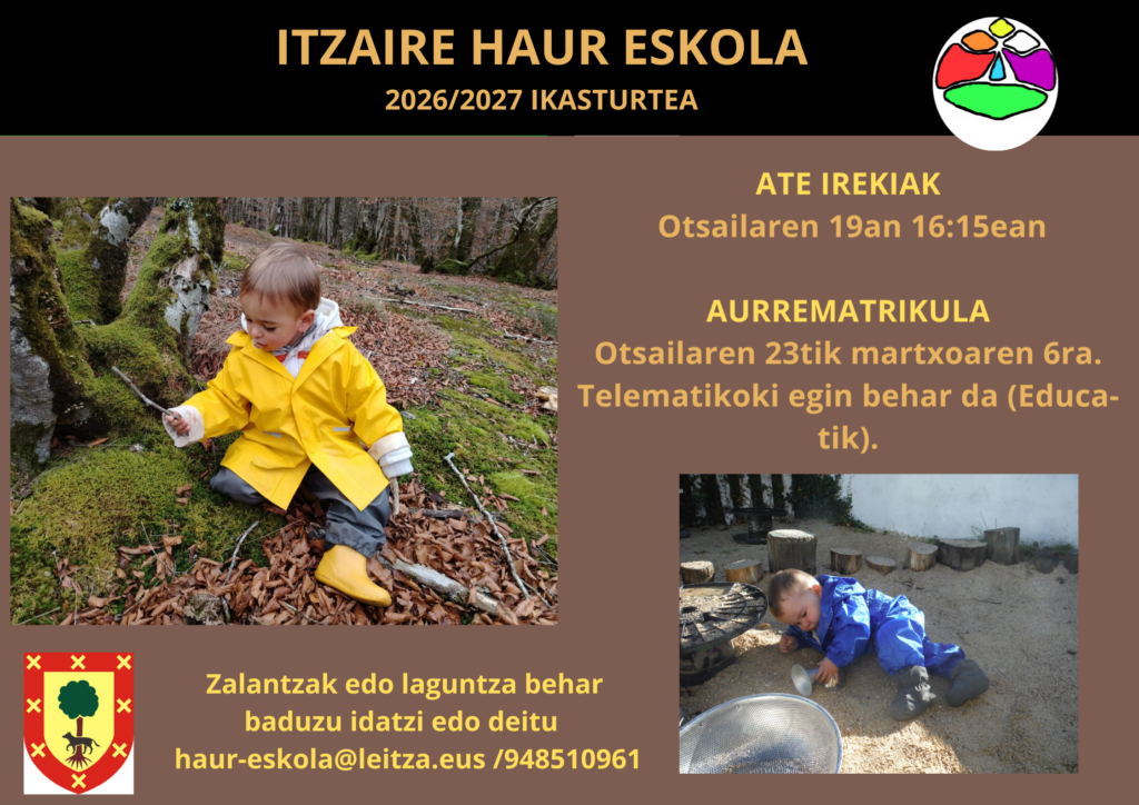 AURREMATRIKULAZIO EPEA: otsailaren 23tik martxoaren 6ra Aurrematrikulazioa familiek telematikoki Educa ataritik egin beharko dute. Sortu daitezkeen zalantzak ate irekietan argituko dira edota haur eskolara hurbildu eta laguntza eskainiko da (horretarako…